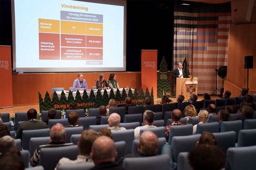 För tredje året i rad beslutade föreningens årsstämma om en höjning av vinstdelningen, både avseende ränta och efterlikvid. Trots lågkonjunktur och bristande lönsamhet för branschen som helhet är den 27 000 personer medlemsstarka skogsägarföreningen ekonomiskt stark.
