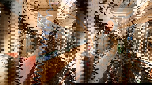 – Vi har fått värme i verkstaden nu, så nu kan vi även hålla på på vintern. Det börjar bli ett heltidsjobb. Mest tid går egentligen åt till att kontakta privata sågverk och hitta kvistfritt virke med bra kvalitet. Av just björk måste vi importera det mesta, säger Eric.