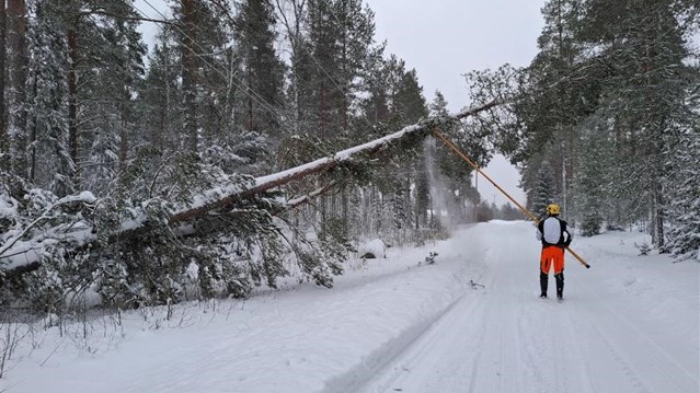 – Att avverka stormfälld skog är farligt, särskilt nu med snön som gör arbetet ännu mer riskfyllt. Vi råder skogsägare att inte arbeta på egen hand utan att i första hand inventera skadeläget och ta hjälp av professionella, säger Olov Eriksson.