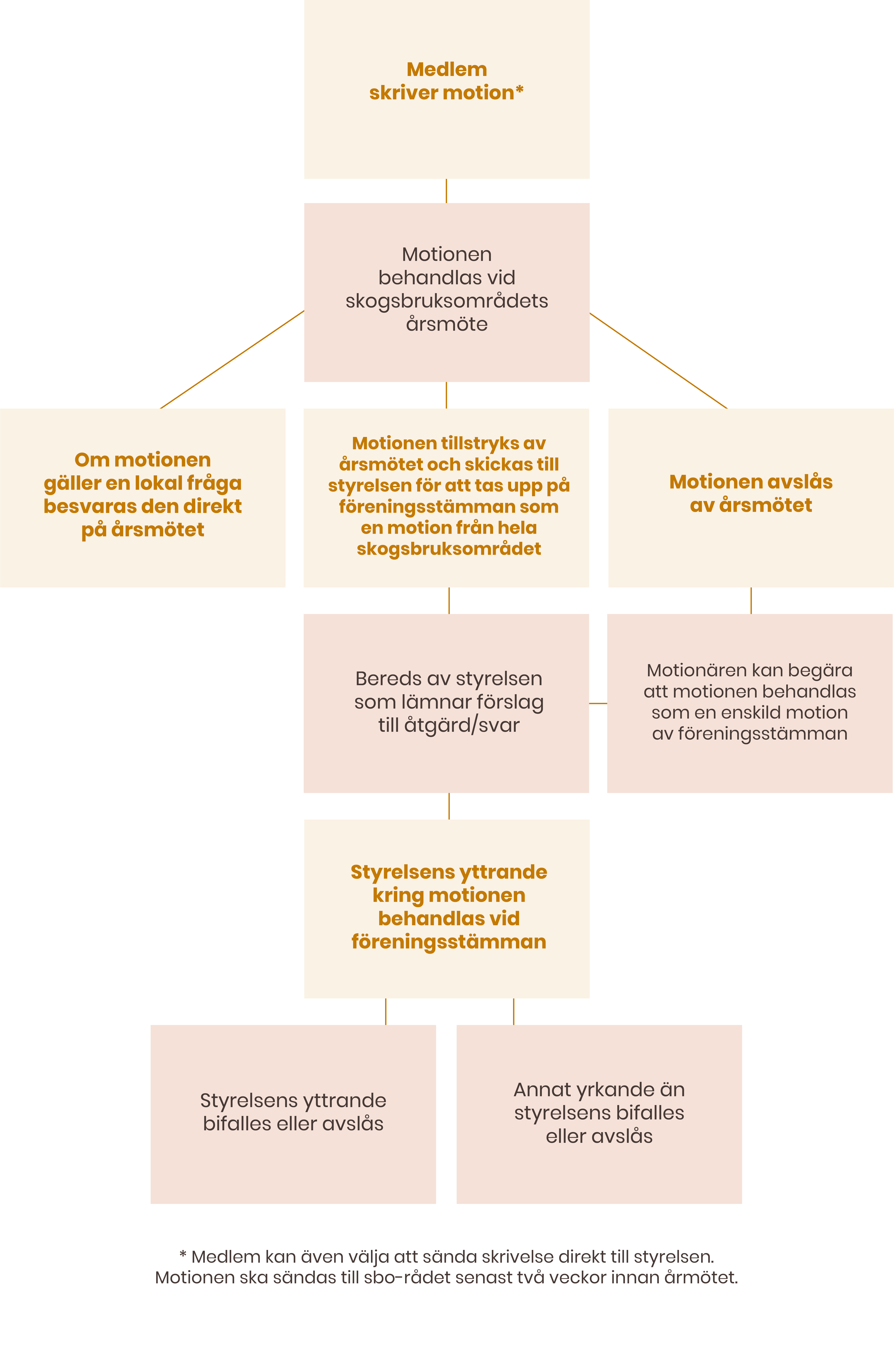 Varje medlem tillhör ett skogsbruksområde baserat på var hens skogsfastighet ligger. Inom varje område finns förtroendevalda medlemmar som väljs av skogsbruksområdets årsmöte. Årsmötet röstar bland annat fram förtroendevalda till sbo-rådet, som organiserar medlemsaktiviteter, driver lokala näringspolitiska frågor och stödjer skogsinspektorerna. Sbo-rådet är även medlemmarnas kontakt för synpunkter och fungerar som remissorgan för styrelsen.