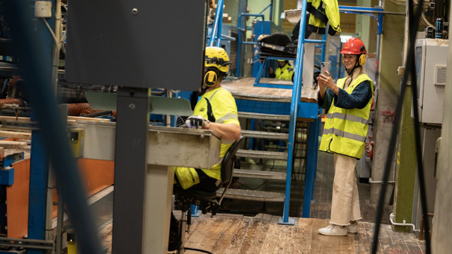 – Vi märker att det finns ett stort intresse för att se hur det går till i våra fabriker. Alltifrån virkesintag och timmersortering till stockens väg genom sågen, plankornas resa genom hyveln och hur det fungerar när vi målar våra ytterpaneler. När vi publicerar filmer i våra sociala kanaler inifrån sågverken eller visar stora maskiner in action – som truckar och höglyftare – får vi väldigt hög räckvidd och stort engagemang. Det visar att människor är nyfikna på maskineriet bakom virket, och då vill vi bjuda dem på den inblicken, säger Nadja.